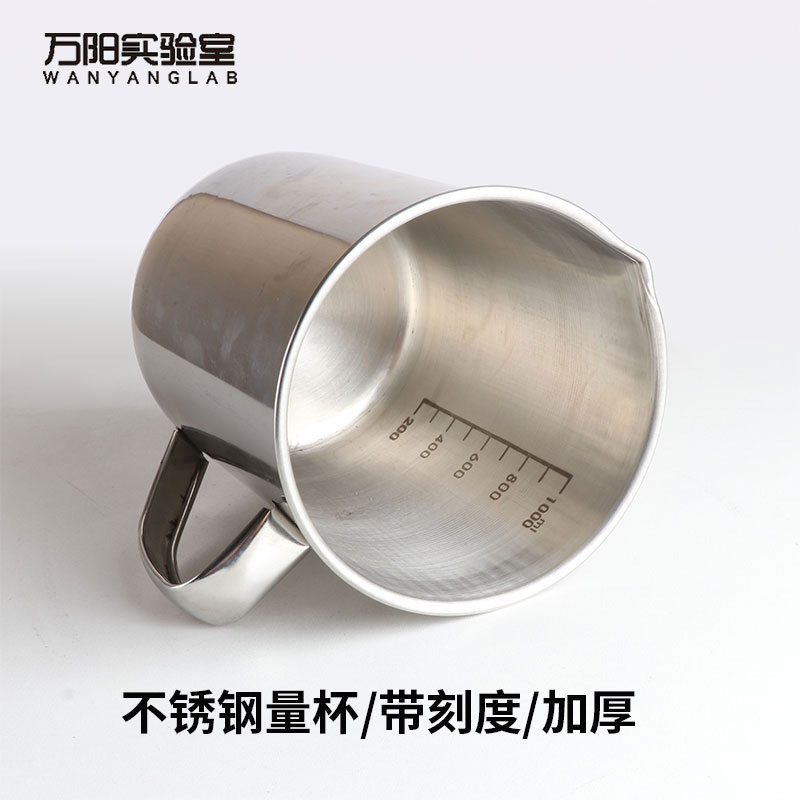 萬陽實驗室不銹鋼量杯500ml/1000ml帶刻度加厚帶手柄烘杯液體量杯帶把手不銹鋼燒杯