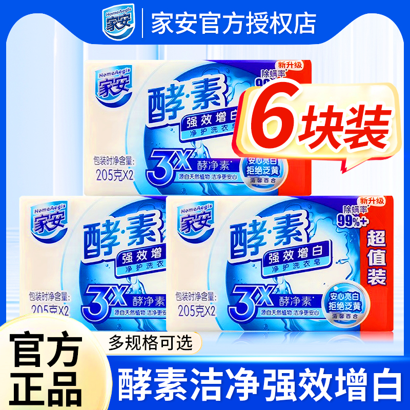 家安酵素凈護洗衣皂百合味205g*6塊強效增白家用抑菌去污漬透明皂