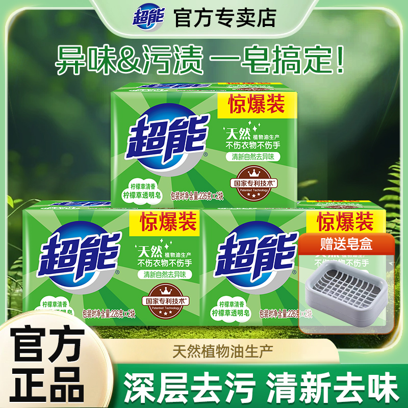 超能肥皂洗衣皂實惠裝家用透明皂內衣皂檸檬草清香洗衣肥皂整箱批