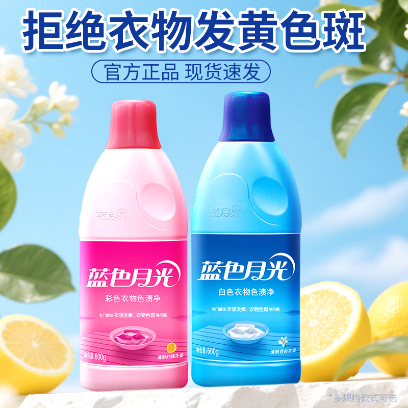 藍月亮漂白劑彩漂劑彩色白色衣物去漬去黃增白水白衣還原劑色漬凈