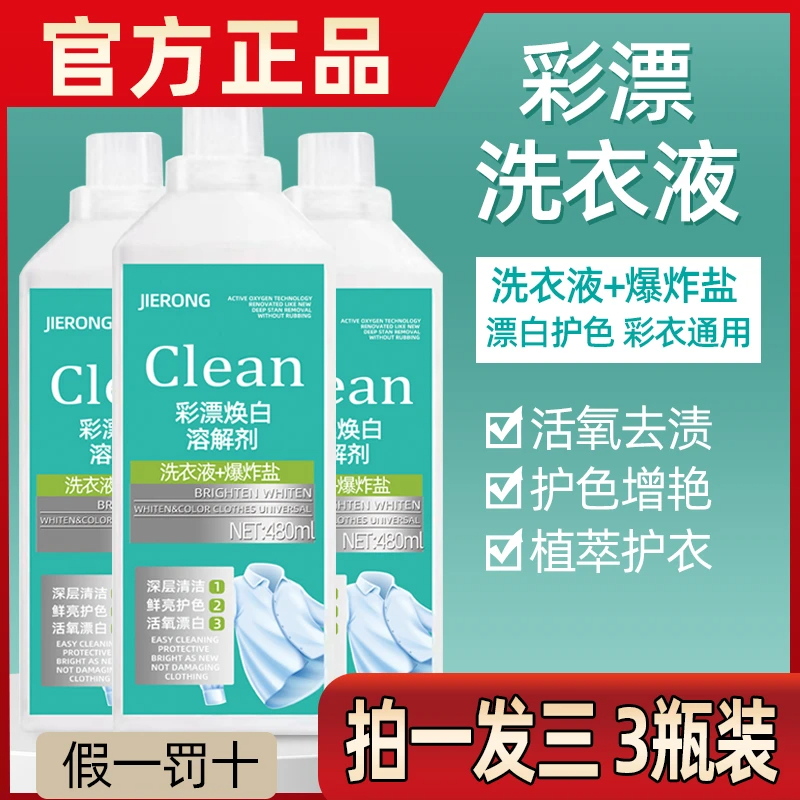 JIERONG潔融彩漂洗衣液活氧去漬彩漂煥白溶解劑白衣凈有氧泡洗液