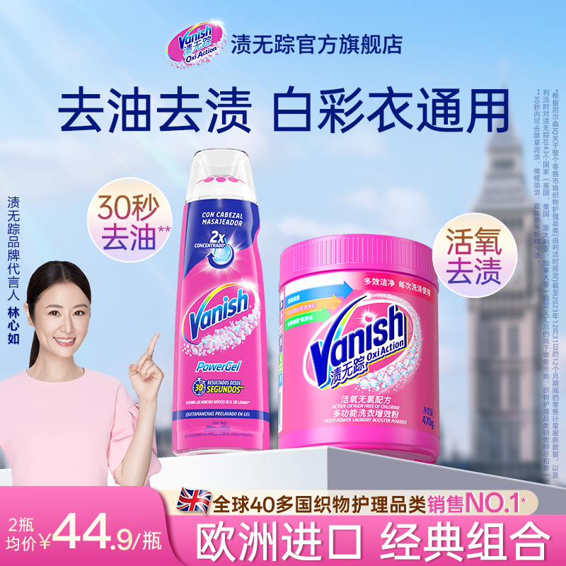 Vanish漬無蹤彩漂粉爆炸鹽+去漬啫喱衣物去漬去油去黃官方旗艦店