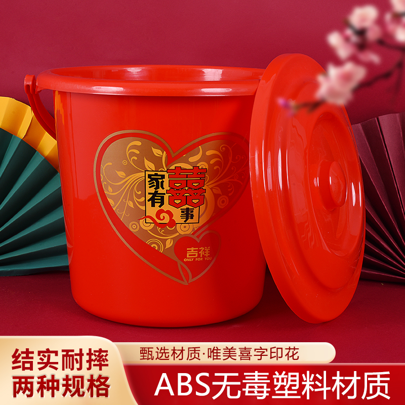 喜字塑料桶喬遷新居帶蓋水桶家用米桶結婚陪嫁子孫桶搬家用品大全