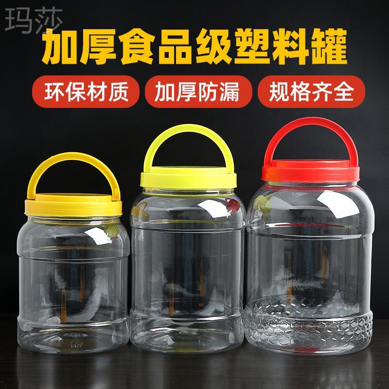 加厚食品級透明塑料密封罐膠瓶帶蓋蜂蜜瓶大泡菜腌菜壇子儲物罐子