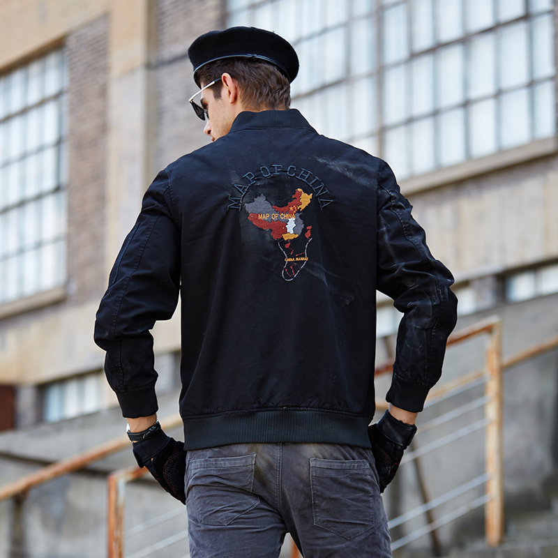 男式戶外春秋冬新款刺繡圖案飛行夾克愛國I地圖刺繡9930 三色可選