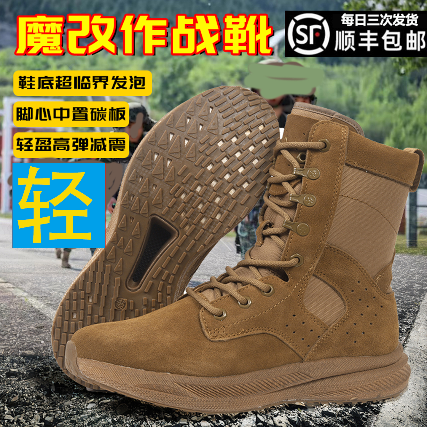 登陸艦魔改碳板沙漠靴透氣登山鞋男作訓靴子夏季戰術靴中幫做訓鞋