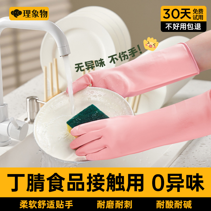 丁腈手套家務洗碗廚房耐用型加厚防滑清潔洗衣服懸掛橡膠手套加長
