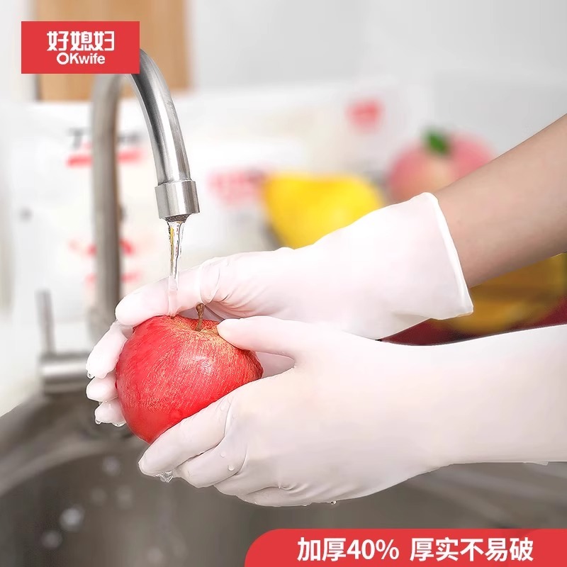 好媳婦一次性乳膠手套加厚耐用廚房洗碗家務食品級專用丁腈手套