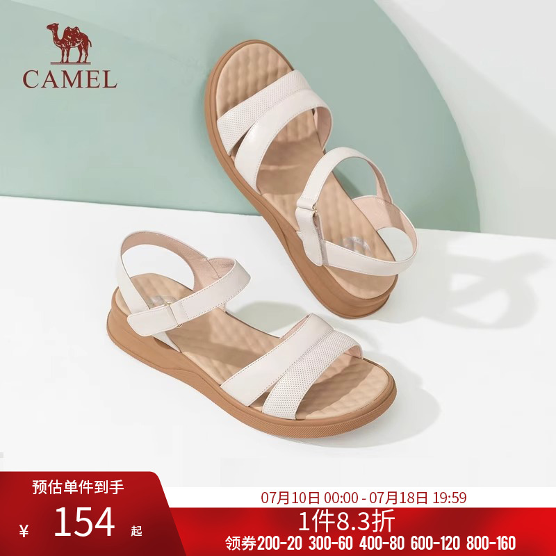 駱駝女鞋2025夏季新款時尚休閑百搭露趾舒適魔術貼時裝媽媽涼鞋女