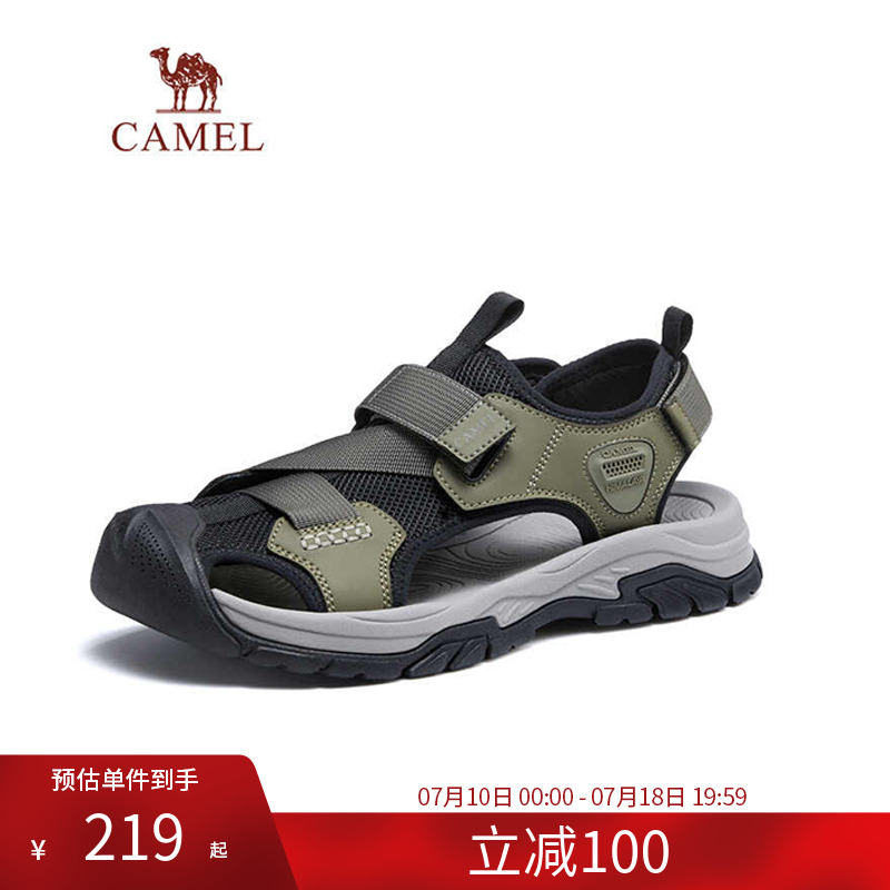 駱駝涼鞋男女同款情侶夏季新款沙灘涼鞋休閑運動包頭防滑溯溪鞋子