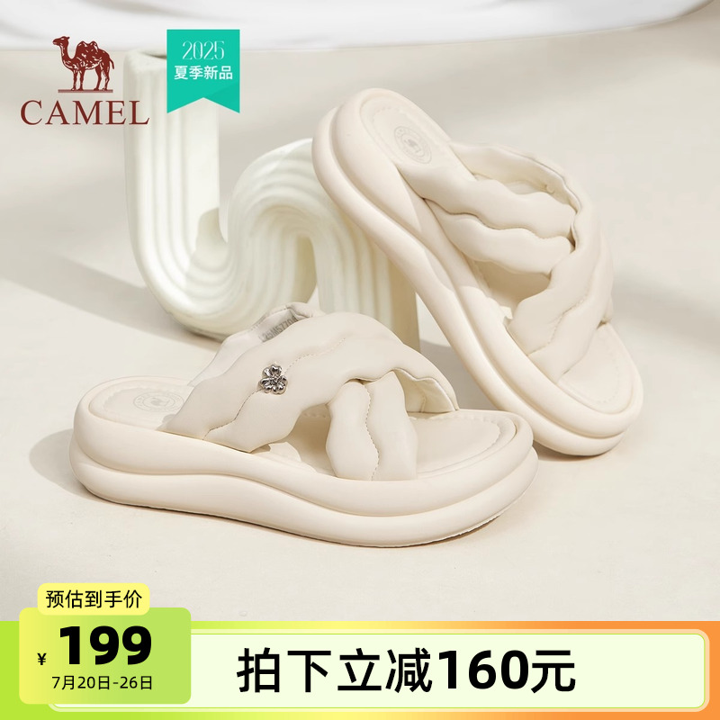 駱駝涼鞋2025夏季新款外穿拖鞋厚底增高一字拖時尚休閑拖鞋沙灘鞋