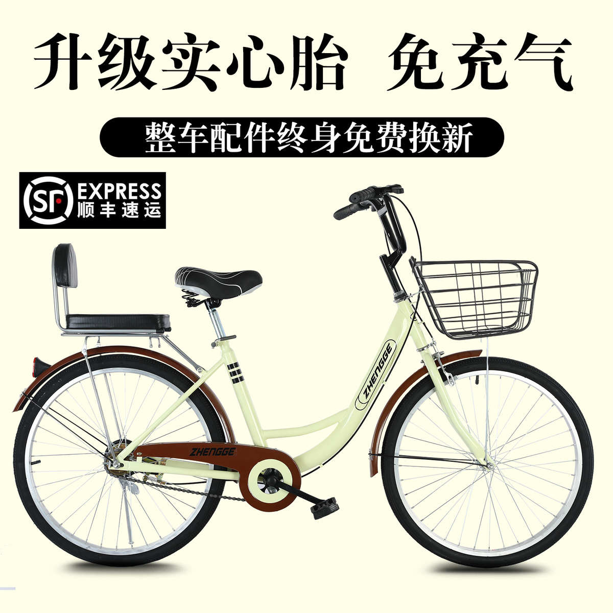 自行車男女式城市女士t變速復古實心胎2U4寸26寸上班