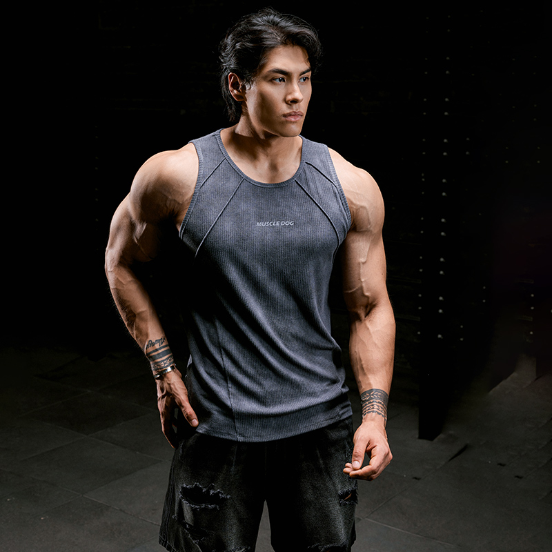 肌肉狗 扎染運動背心男夏季美式肌理感圓領無袖運動訓練服健身衣