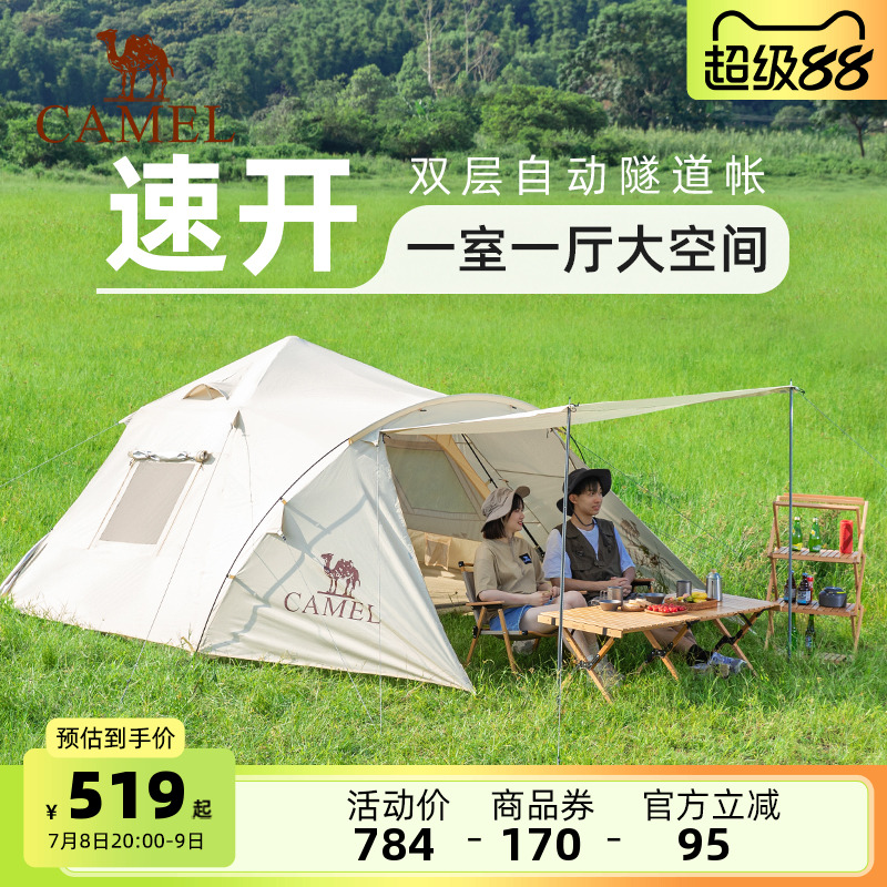駱駝戶外露營便攜自動帳篷野營過夜防雨防曬野外帳篷露營全套裝備