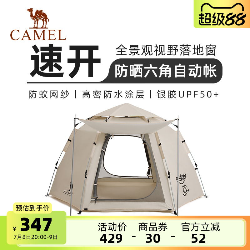 駱駝x在外戶外六角自動速開帳篷帶桿公園野餐涂銀防曬便攜式露營
