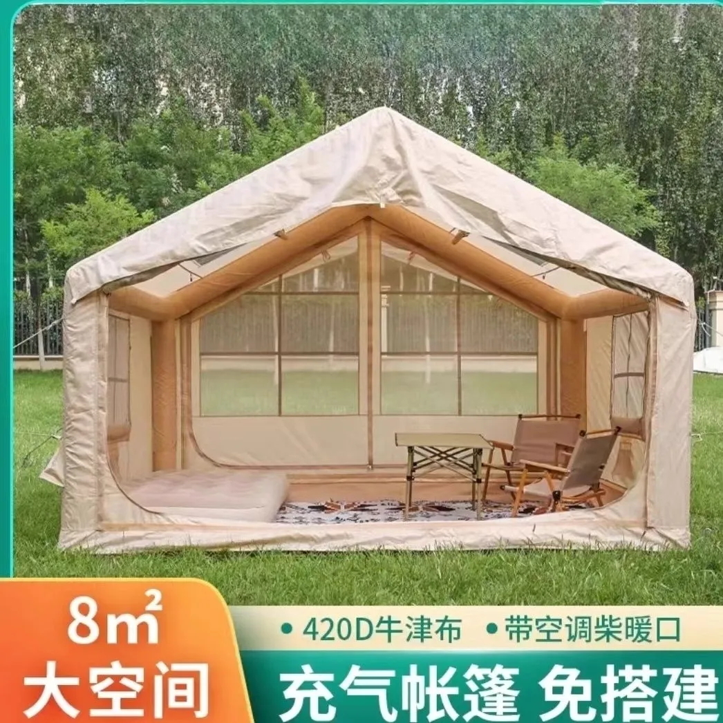 8平戶外野外露營充氣帳篷加厚防暴雨防寒防凍防雪防曬防塵大氣柱