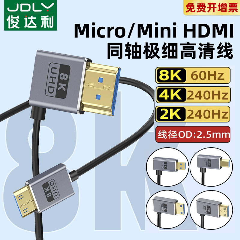 俊達利HDMI線mini高清極細Micro小頭超短柔軟2.1電腦電視機顯示器