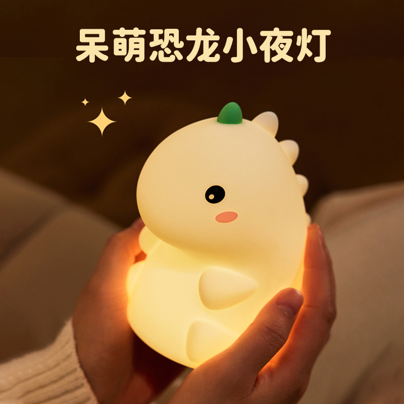 呆萌恐龍硅膠小夜燈拍拍燈臥室喂奶伴睡燈晚上專用小夜燈兒童禮物