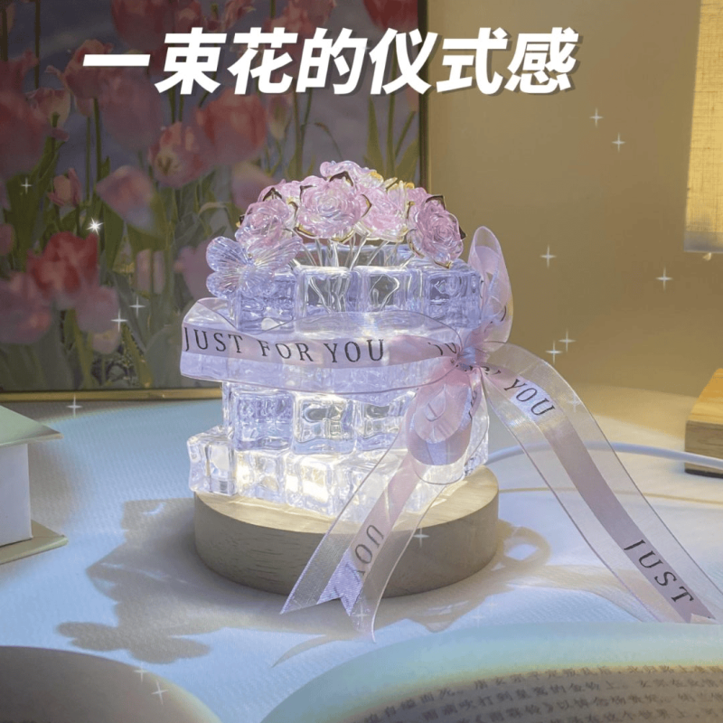 diy手工禮物高級感玫瑰冰塊小夜燈女創意送女友七夕情人節氛圍感