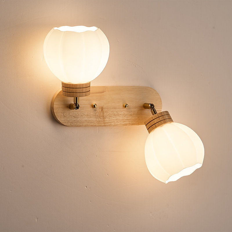北歐原木風雙頭超亮可旋轉臥室床頭實木現代簡約創意背景墻壁燈