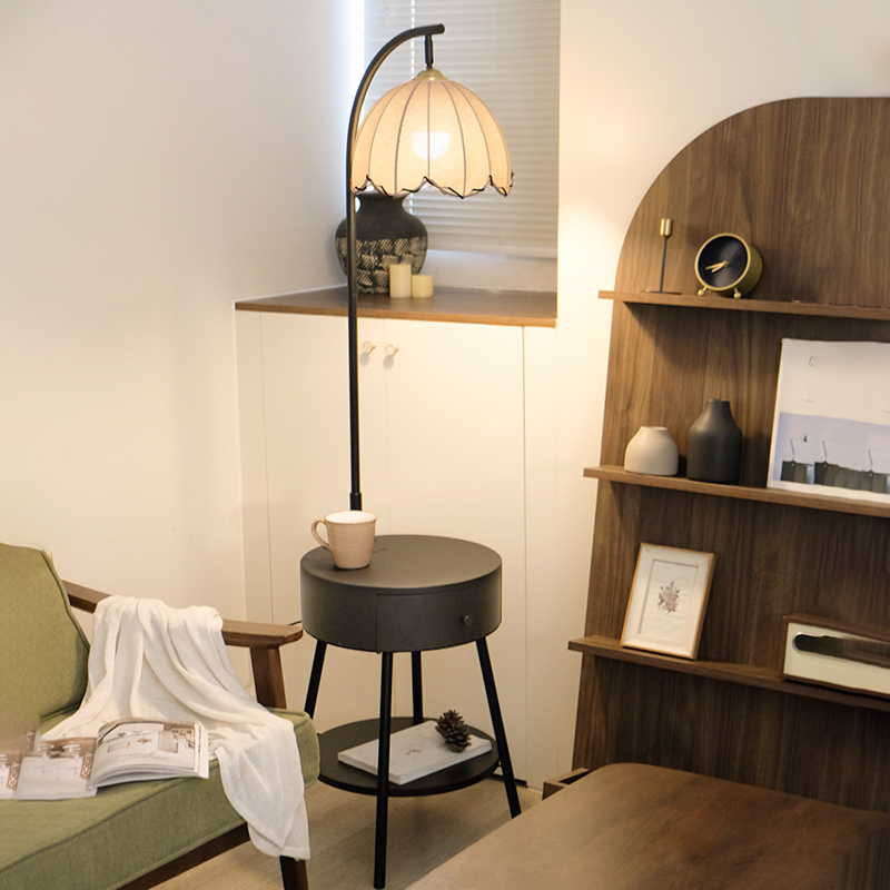 中古風客廳落地燈氛圍感沙發邊置物床頭柜一體臥室立式落地臺燈