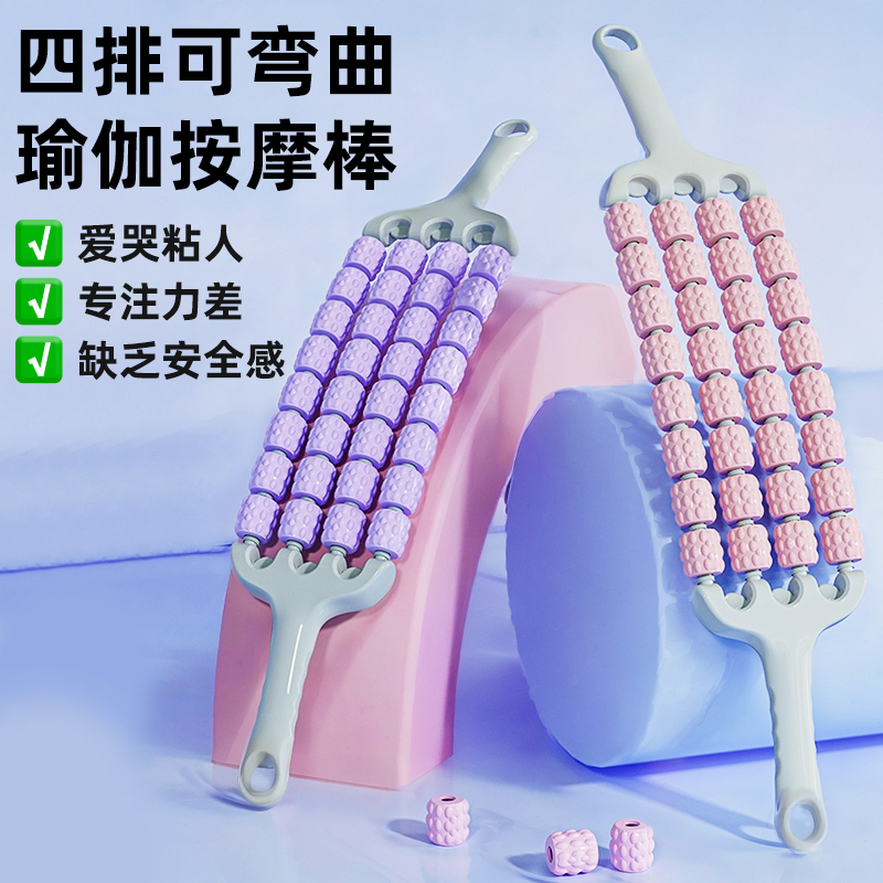 肌肉放松滾輪四排肌肉放松棒狼牙按摩滾軸神器腿部可彎曲放松棒