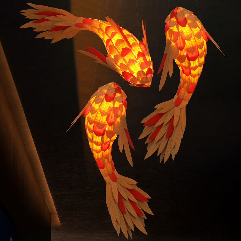 定制鯉魚吊燈新中式紅色魚燈火鍋店酒店餐廳木藝工程魚形裝飾燈具