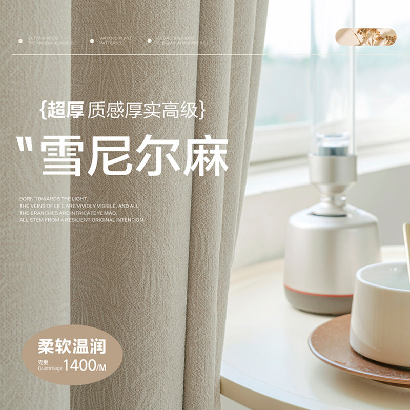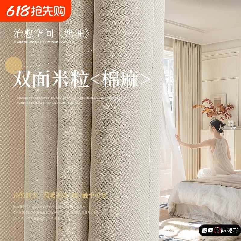 加厚全遮光防曬避光棉麻窗簾臥室客廳飄窗2022年北歐新款遮陽布料