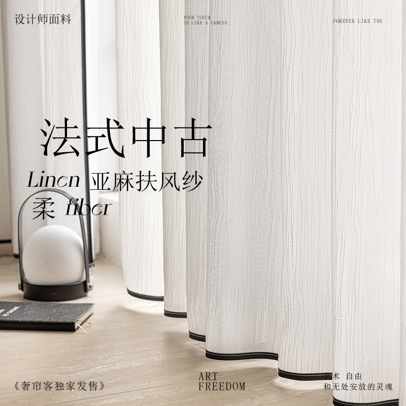 法式中古風亞麻紗簾透光不透人紗隔熱防曬臥室高級感2025新款窗簾