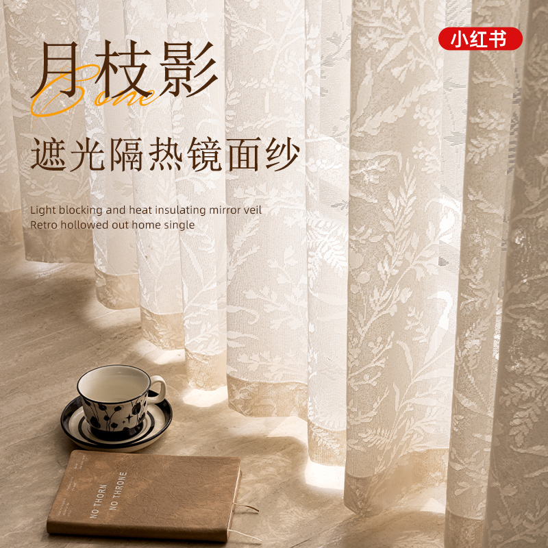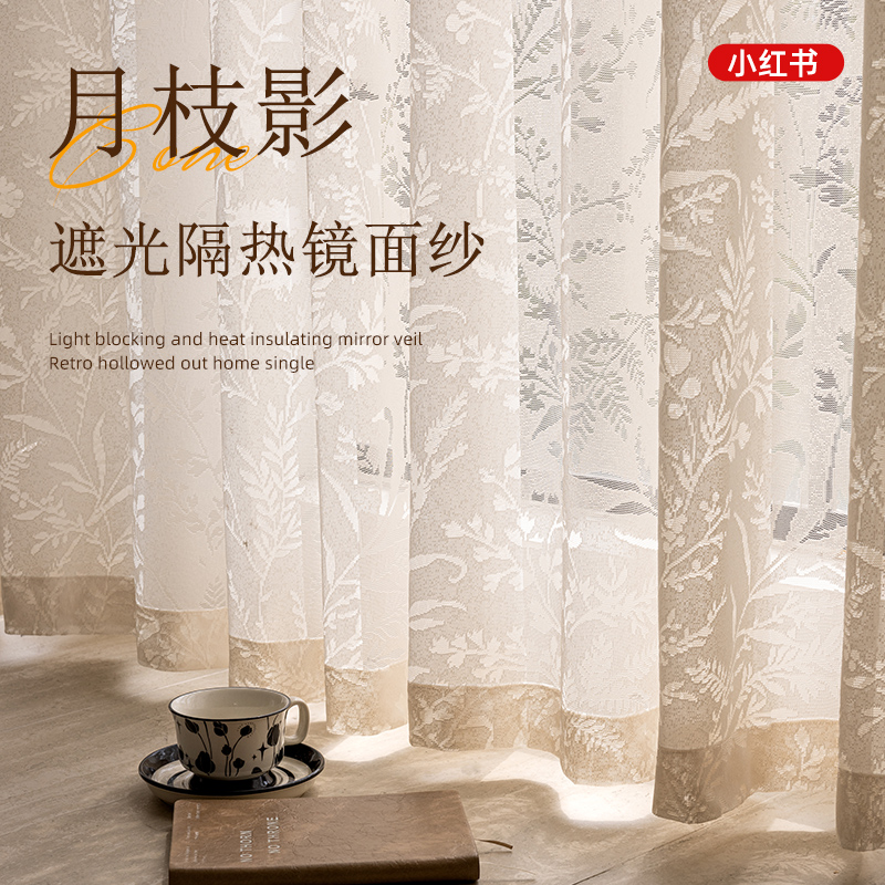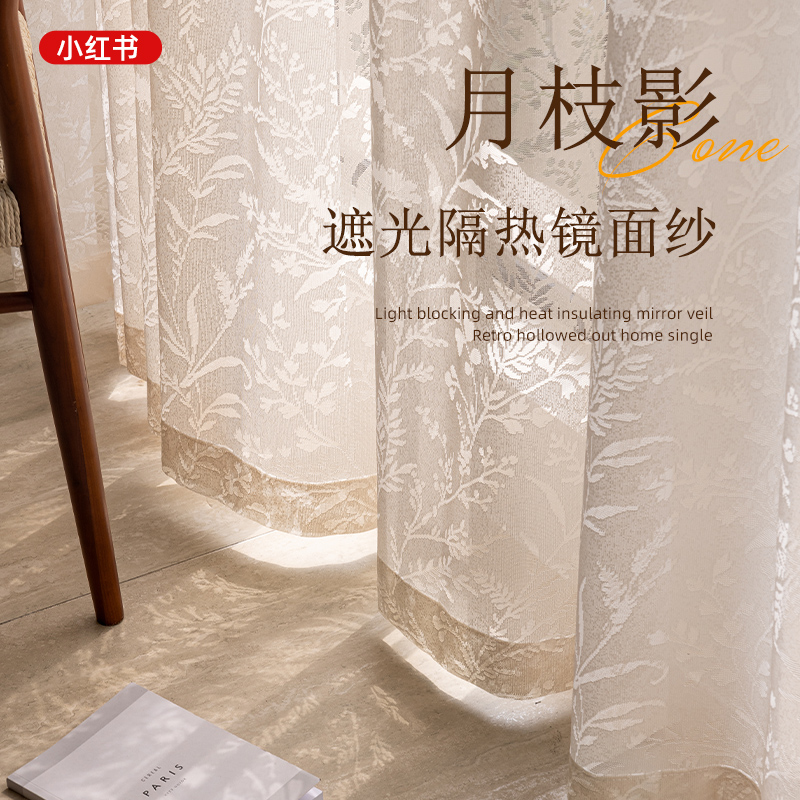 新款奶油色鏤空紗窗簾法式紗簾透光不透人陽臺客廳遮光窗紗鏡面紗