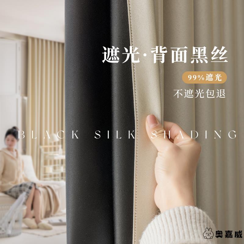 2025新款加厚加高雙面雪尼爾遮光窗簾布料掛鉤客廳臥室帶桿一整套