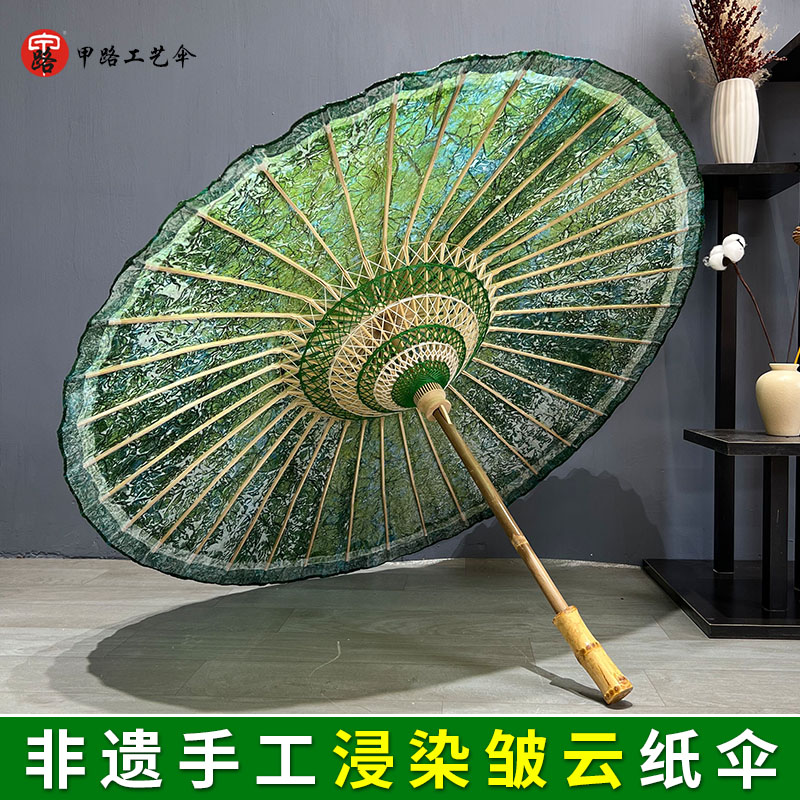 婺源甲路非遺油紙傘古法純手工浸染綠色傳統古風防雨民宿拍攝道具