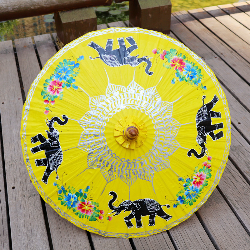 泰國手繪油布傘攝影古風道具漢服傘紅色舞蹈傘東南亞裝飾工藝傘