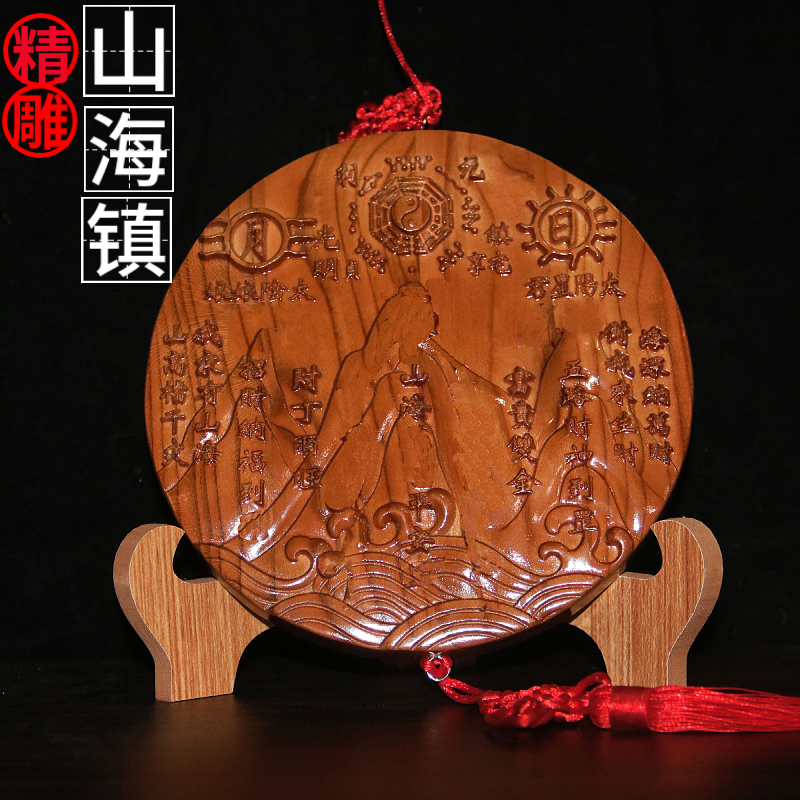 正宗桃木立體山海鎮八卦鏡掛件擺件玄關客廳室內室外家居增旺房屋