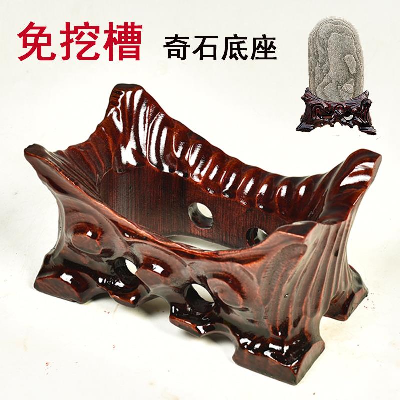 免挖槽奇石底座實木托架不規則風凌石泰山石頭底座水晶球底座凹槽
