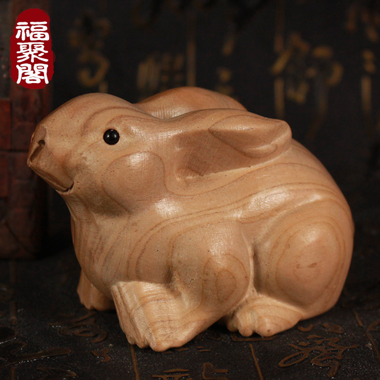 桃木兔擺件木雕生肖兔子無漆木質立體原木玉兔吉祥招財開運把玩件