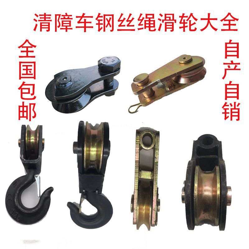 【熱賣】清障配件拖車萬向滑輪清障車鋼絲繩定滑輪帶鉤子滑輪粵