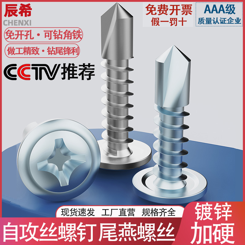 自攻絲螺釘自攻螺絲尾燕螺絲釘鉆尾自攻螺絲燕尾釘加硬鍍鋅大扁頭