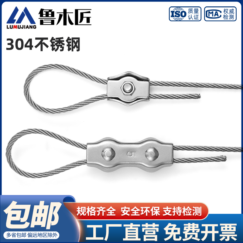 304不銹鋼鋼絲繩單夾雙夾卡扣鎖扣單卡雙卡固定接頭M2M3M4M5M10mm