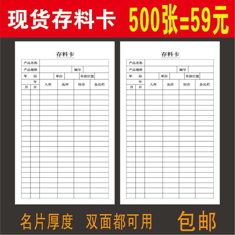 500張存料卡庫存卡倉庫物資收發物卡材料庫存卡片雙面貨卡物料卡