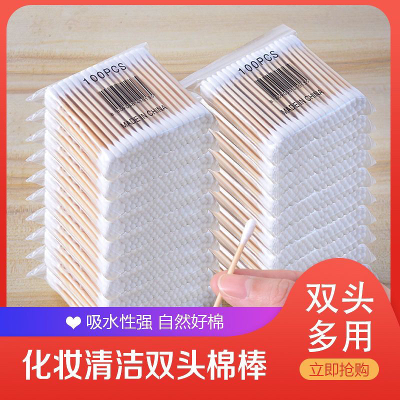 雙頭棉簽棉棒一次性化妝棉卸妝棉花棒掏耳清潔衛生棉棒圓尖頭木棒