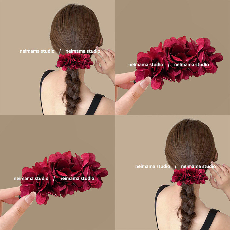 包配件拎環!易夢玲同款花朵發夾!高彈力香蕉夾后腦勺一字發飾女