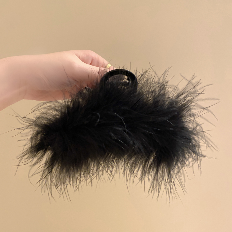 氛圍感滿滿~羽毛抓夾黑色鴕鳥毛鯊魚夾后腦勺高端氣質發夾超大號