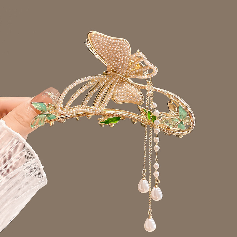 現貨速發花蝴蝶流蘇發飾復古風發夾合金抓夾大號后腦勺夾子氣質頭