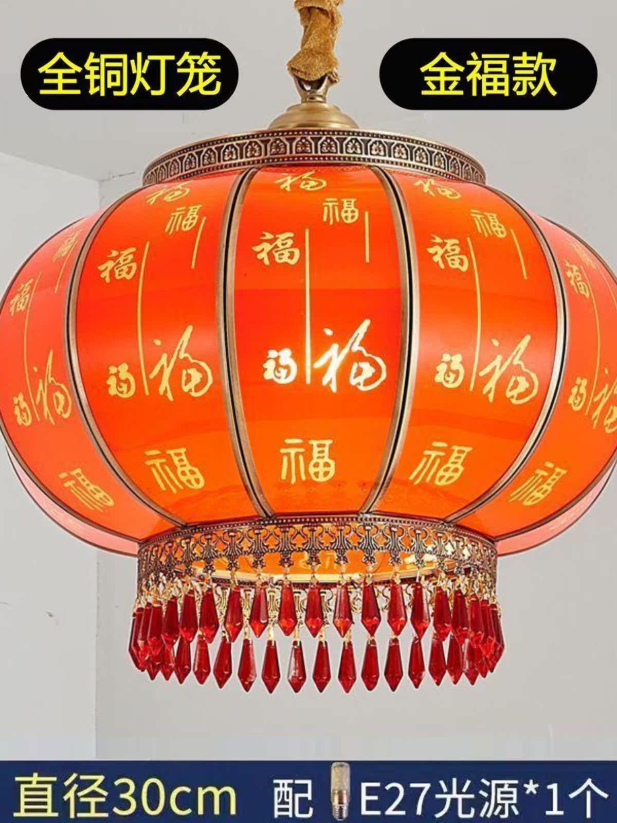 喜慶全銅陽臺紅燈籠別墅中國大門結婚戶外防水吊燈庭院風喬遷掛u.