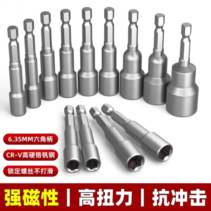 六角柄風批套筒頭組合套裝手電鉆電動螺絲刀6.35起子*鉆配件