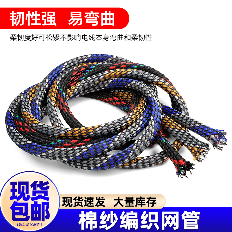棉紗網12/8/4mm PET編織棉紗套管機箱音響線護套減震網管 多色