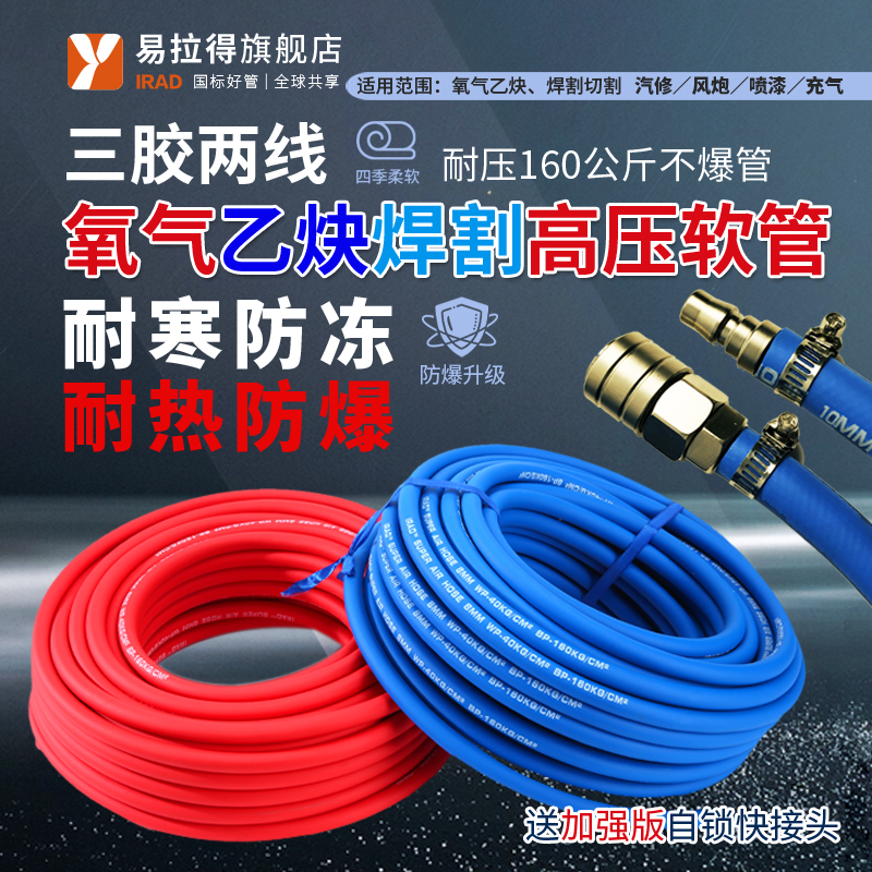 易拉得防爆高壓氣管氧氣乙炔丙烷管線工業氣割焊槍軟管雙色8/10mm