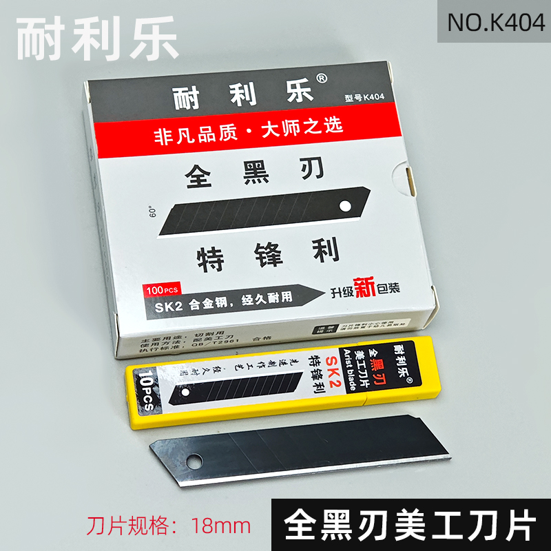 耐利樂K404大號美工刀片18mm全黑刃壁紙刀工具介刀片黑鋼鋒利刀片