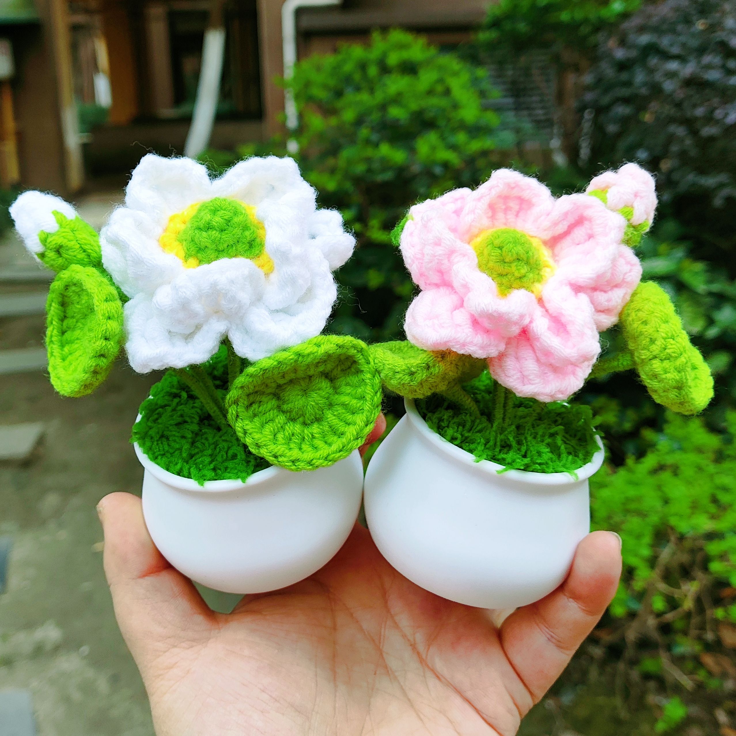 成品毛線鉤織荷花迷你盆栽國風古典清新茶室書桌手工擺件生日禮物